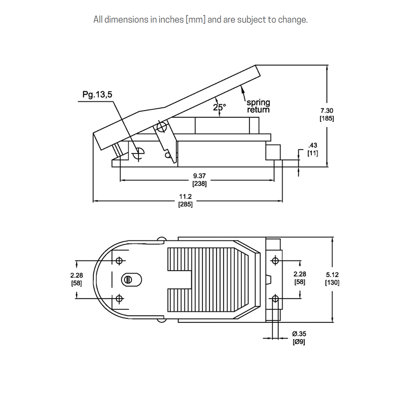 Proportional foot pedal typically utilized in mobile equipment applications.