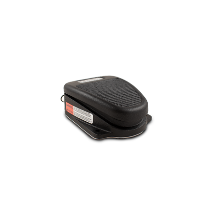 On / off foot pedal that is ultra compact with black finish and anti-skid base.