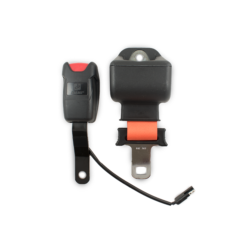 Lap seat belt kit with electrical contact for the Actimo heavy-duty operator seat. Enables the seat belt to operate as a deadman and not allow the machinery to function without seatbelt usage.
