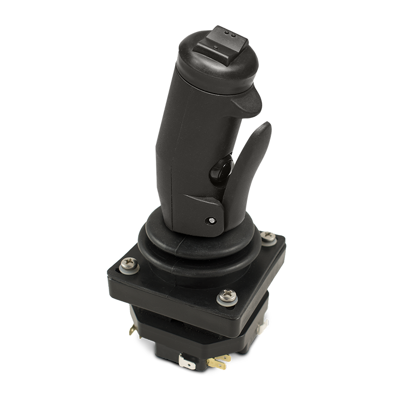 Finger operated joystick designed specifically for bang / bang (on / off) control.