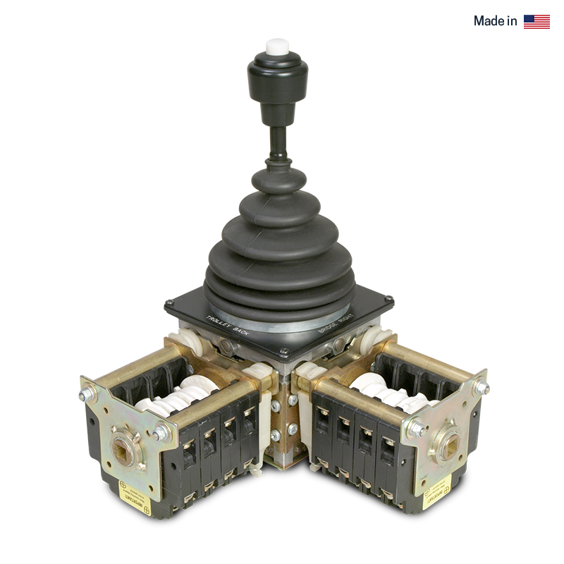 Often described as an oversized VNSO, the VNS2 multi-axis joystick offers the maximum in ruggedness and versatility. The VNS2 provides step and stepless control for AC & DC variable speed applications, and feature contact drives that can be configured to fit into the available panel space.