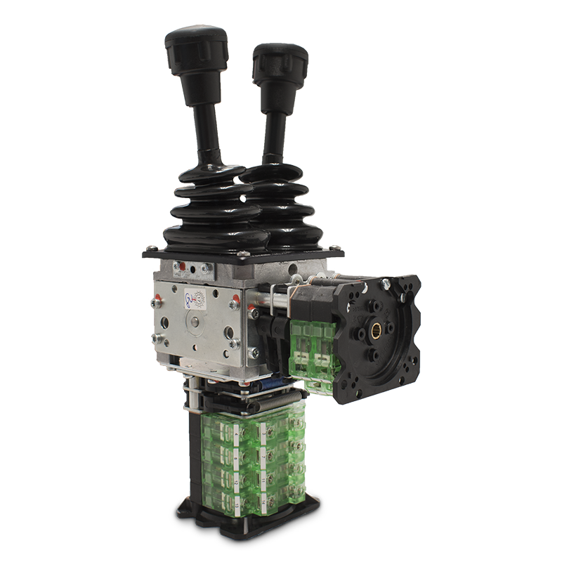 1,2 & 3 Axis mill-duty Joystick supports horizontal, vertical and tandem mounting of contact drives. In applications where mounting space is limited, customers benefit from the ability to configure the contact drives to suit the available space.