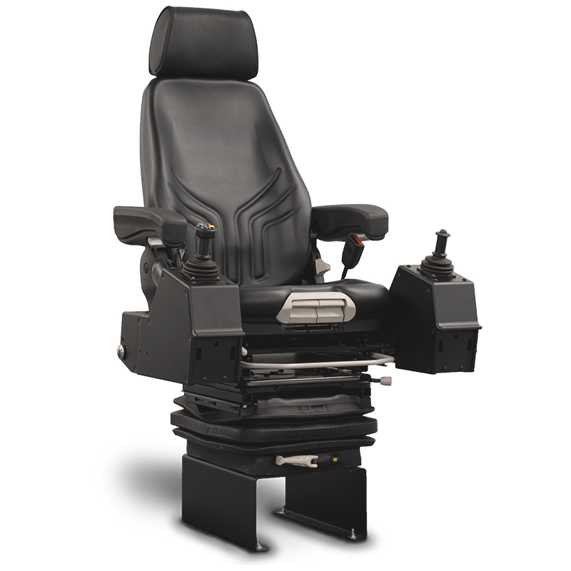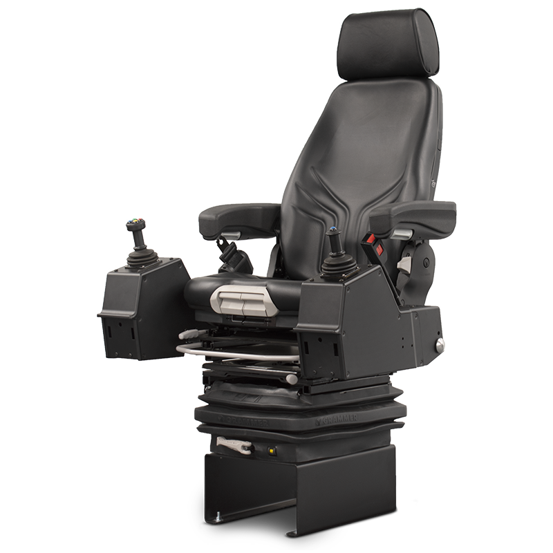 The Grammer Actimo operator seat offers a large range of quick and easily accessible adjustment features to adapt to most individuals in a range of applications. Standard features include field replaceable cushions, adjustable headrest, seat-mounted armrests, mechanical lumbar support, fore and aft seat slide adjustment, backrest tilt, cushion tilt, depth adjustment, and document pouch.