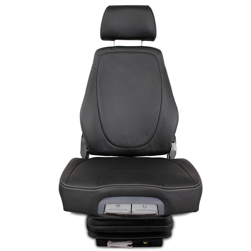 Full leather seat with baffles / back ridges for increased airflow. Leather model features additional adjustability, motorized recline, optional operator presence switch and optional heat.