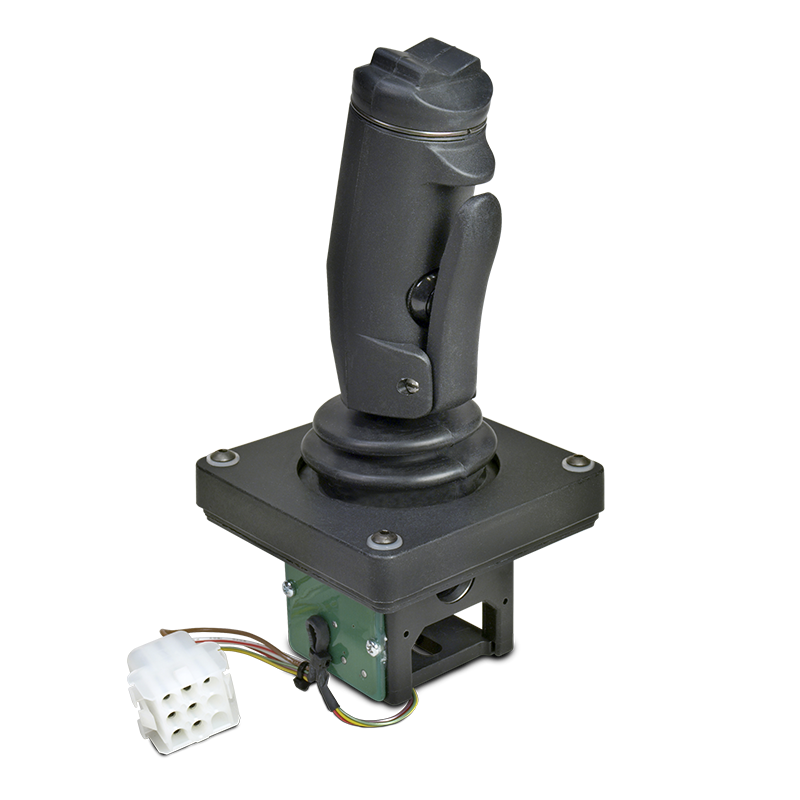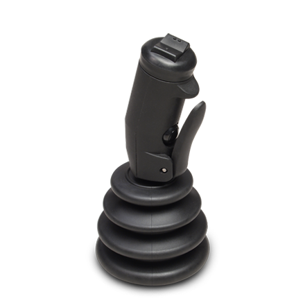 The BH handle is ideal for use in applications where security of a operator presence switch is essential to the control of the machinery. The optional rocker switch is ideal for man lifts, scissor lifts, buckets, and other steering applications. Typical equipment applications include: