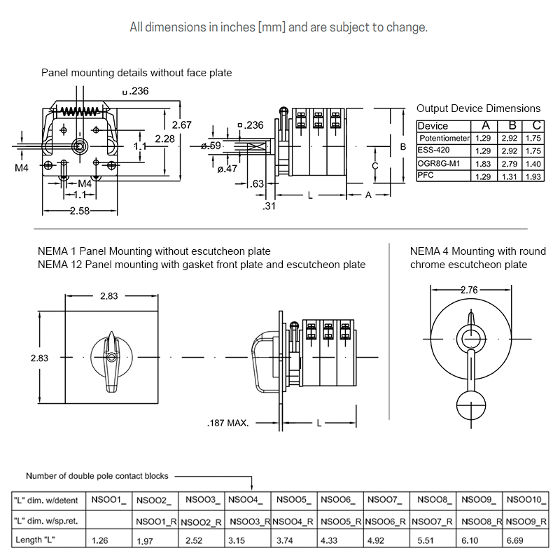 Shares the benefits of the NSO-0 rotary switch, but with DC contact blocks.