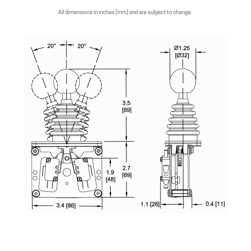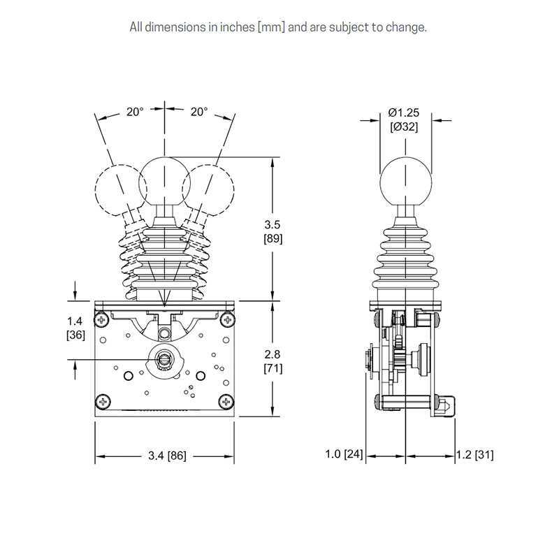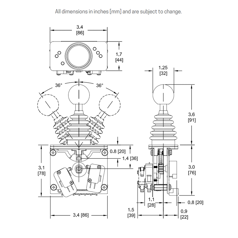 Rugged and reliable hall-effect joystick configurable with a range of handles and output types.